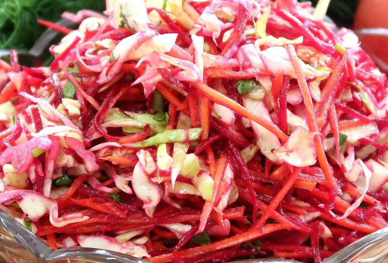 Свекла, морковь, пекинская капуста, соус.
